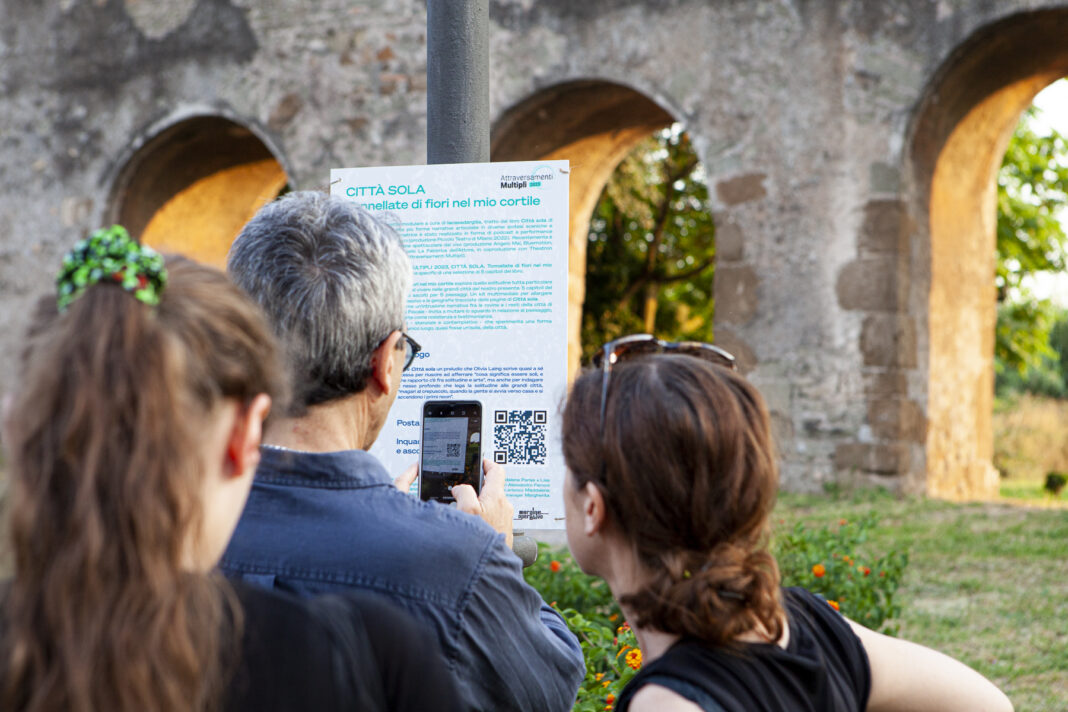 Il primo evento in programma nella serata d’apertura del 29 giugno è stato il talk performativo CITTÀ SOLA nel quale la compagnia lacasadargilla ha presentato il progetto modulare #Variazione 2. Tonnellate di fiori nel mio cortile una installazione site specific, pensata cioè per il luogo che ospita il festival e che consta di 5 installazioni, ognuna delle quali rimanda a una registrazione audio ascortabile online, 4 podcast + una introduzione che esplora altrettanti capitoli del romanzo di Oliva Lang Città Sola (Mondadori, 2018).