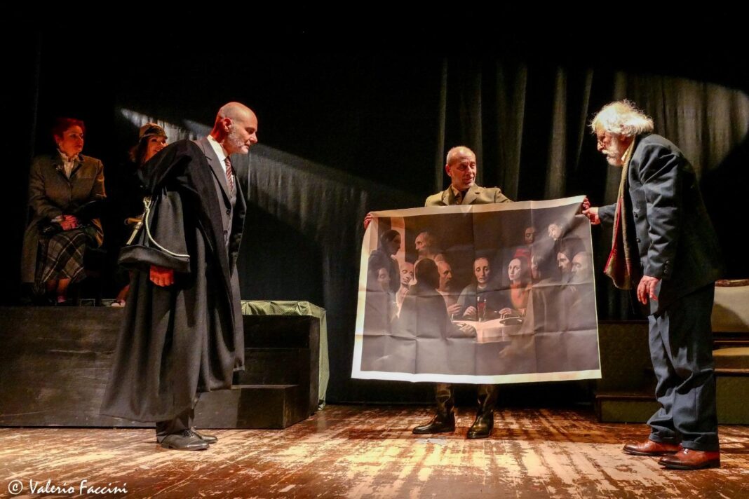 Durante il processo, che occupa la seconda parte dello spettacolo, si scende con dovizia di particolari sulle tecniche di invecchiamento dei quadri falsificati, dall’uso d pennelli antichi, alla preparazione dei pigmenti colorati, alla formaldeide usata per ottenere il craquelure (quelle micro crepe che si creano col tempo nel colore dei quadri antichi).