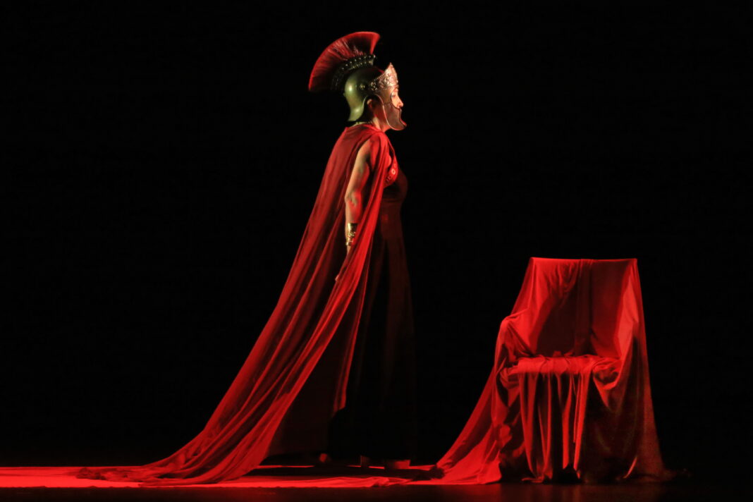 Miana Merisi è una grandissima interprete che ha l’autorevolezza recitativa, la ieraticità e la presenza del personaggio che interpreta, tanto che si può dire che Miana Merisi è Clitennestra, ricomparsa lì sulla scena dell’Altrove teatro studio.