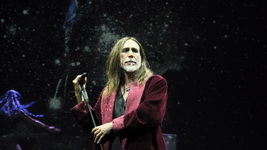 La scena è imponente. Al centro del palco una pedana girevole nella quale sono inseriti una poltrona, una scrivania/tastiera e altri elementi di arredo, sulla quale Agnelli canta, ora rimanendo fermo e dunque compiendo un giro quando la pedana si muove, ora camminando e dunque rimanendo sempre nello stesso punto, se la pedana si muove.