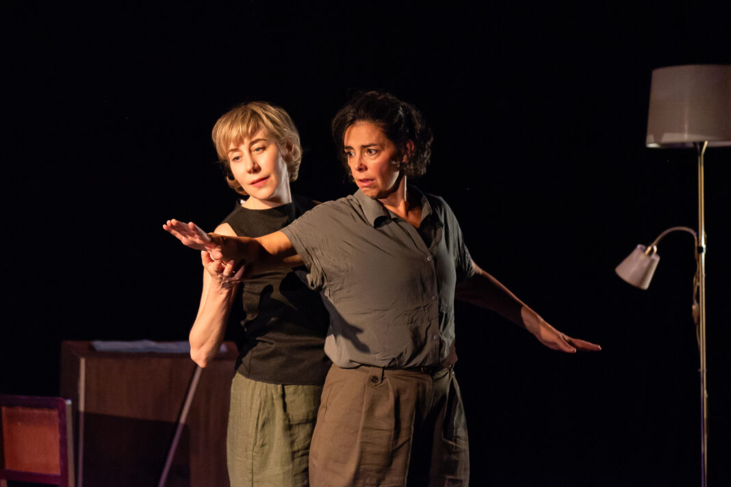 Joana e il suo alter ego affrontano anche con ironia la decisione che fa paura. Sónia Barbosa e Giada Prandi lavorano in armonia nel rispecchiarsi l’una nell’altra, al punto che la recitazione bilingue accarezza il pubblico. Anche se le parti in portoghese sono tradotte in italiano su uno schermo, la sensazione che proviamo è che la traduzione sia addirittura superflua. Il testo non perde mai di comprensibilità, viaggia da solo sui dialoghi perfetti del testo, compone una musica armoniosa di parole che accompagna il dolore di Joana, prova ad addolcirlo. Noi però soffriamo con lei.