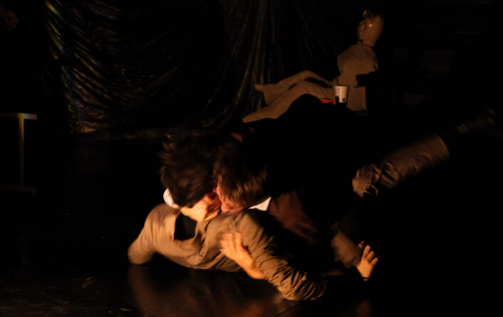L’onanismo con cui si apre lo spettacolo è un chiaro indicatore dell’incapacità del maschio contemporaneo di intessere relazioni con altri essere umani del proprio e dell’altro genere.